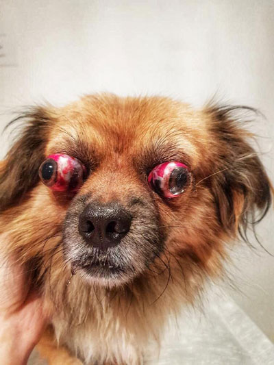 Finalmente quedó ciego del ojito que le quedó. A pesar de eso, nada le impide realizar una vida normal y ser feliz. Cuando camina no se choca con nada y se maneja super bien.